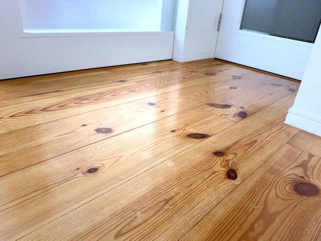 また、素材の特性上、傷やへこみがつきやすく、特に柔らかい樹種では家具の移動などで傷がつきやすい点も考慮が必要です。水分に弱いため、キッチンや洗面所などの水回りでは注意が必要となります。